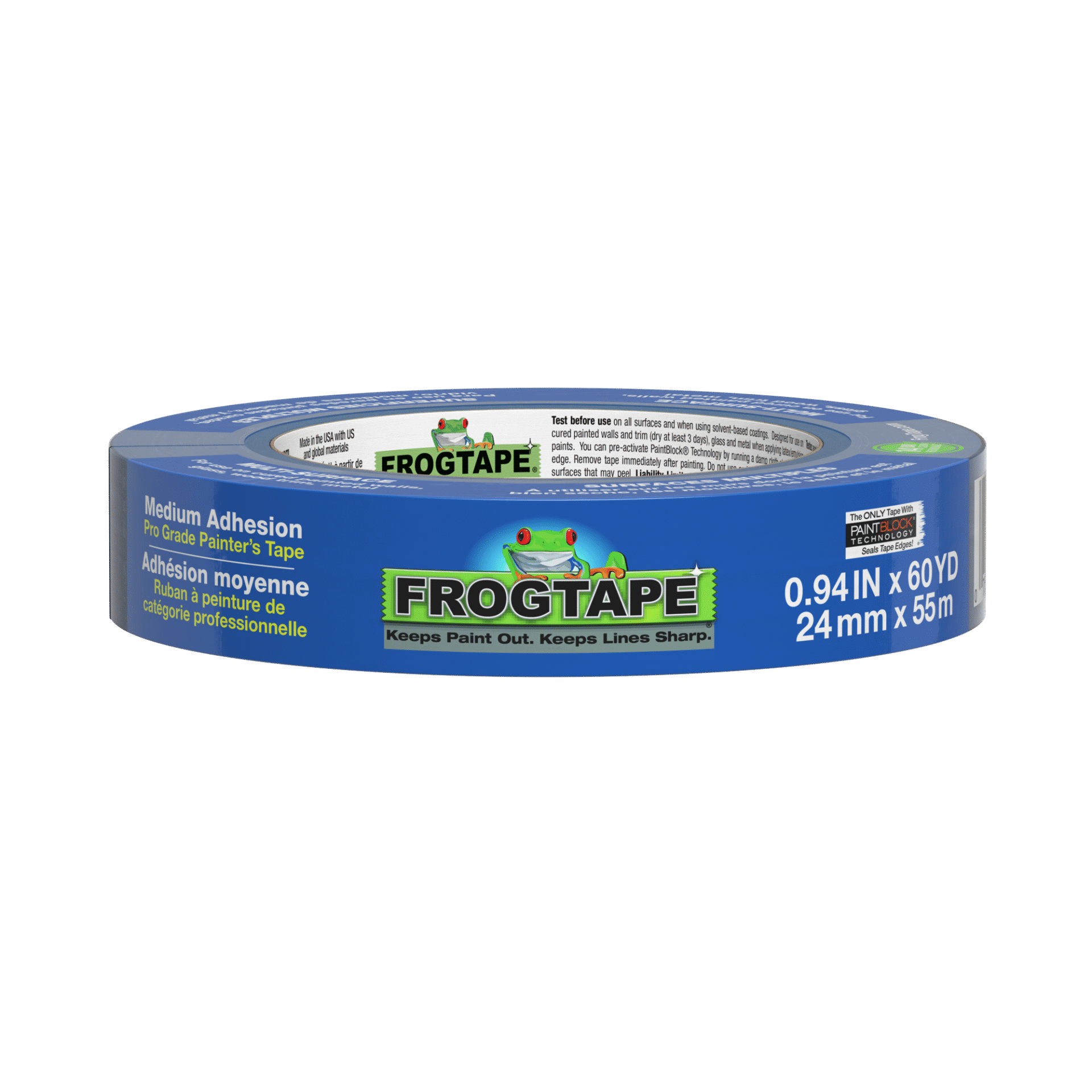 Unlike other inexpensive masking tapes, FrogTape® effectively prevents paint from running underneath. PaintBlock® Technology reacts instantly to water, paint or liquids, forming an instant barrier layer and creating a fast and impressive block for flawless results.